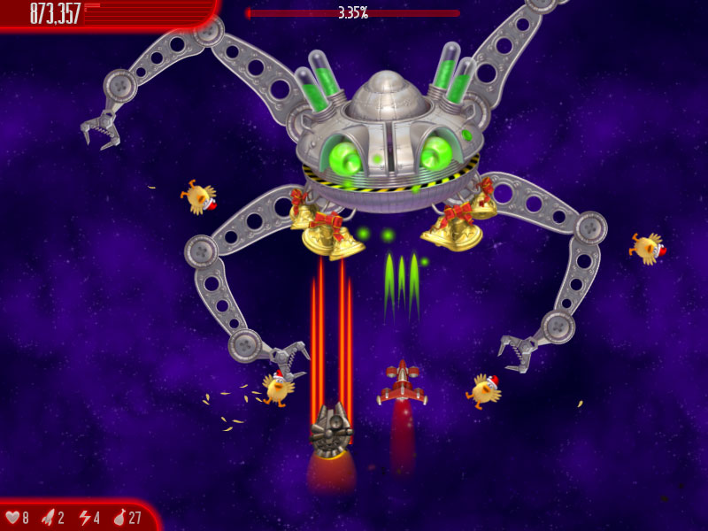 I instantly knew what had to be done. I dropped my half-eaten chicken burger and jumped in my cockpit. With a greasy finger I set my lasers to "extra crispy" and blasted off to intercept the fowl invaders.