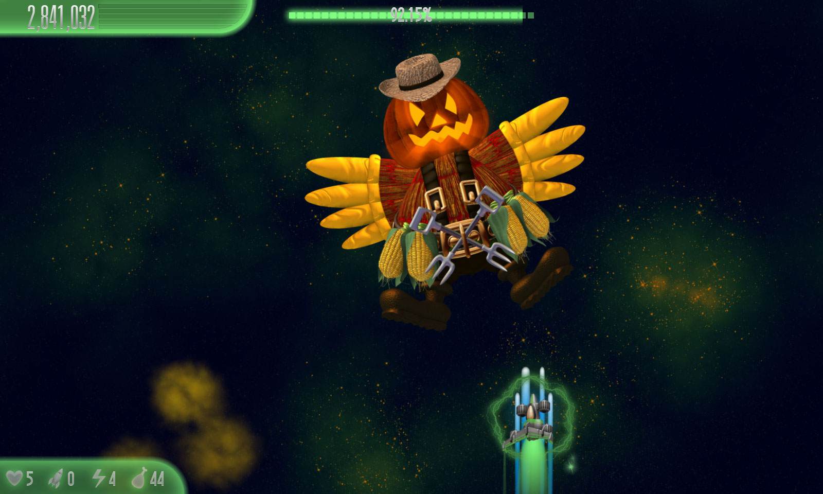 As the last intergalactic chicken invaders flee our Solar System and lingering feathers still smolder in interplanetary space, I ease up on the trigger and wipe the sweat from my brow.